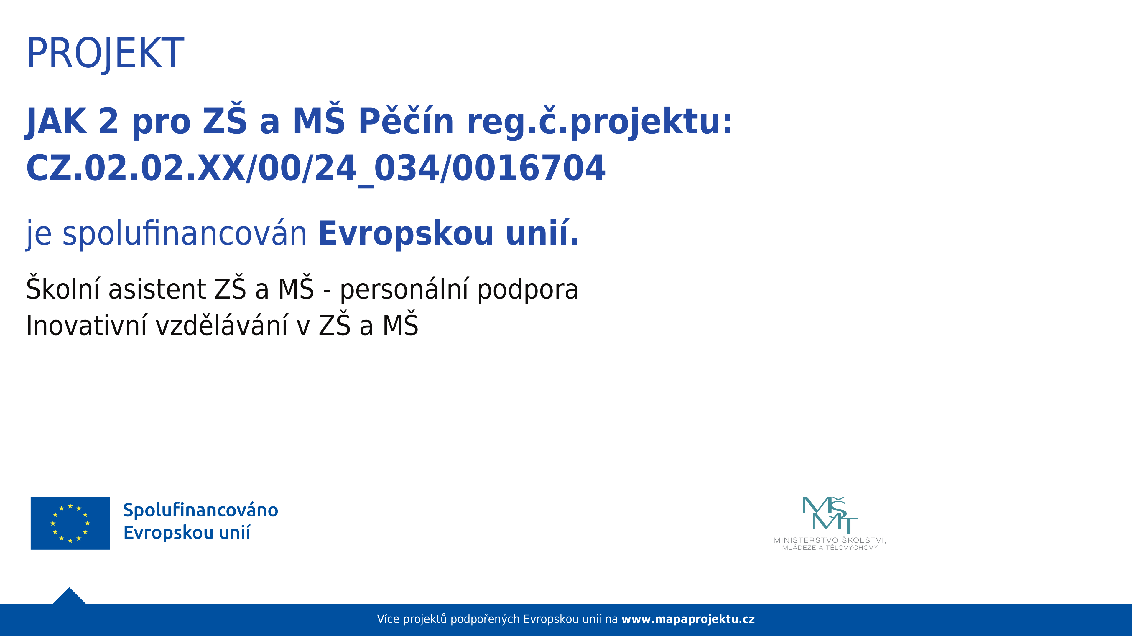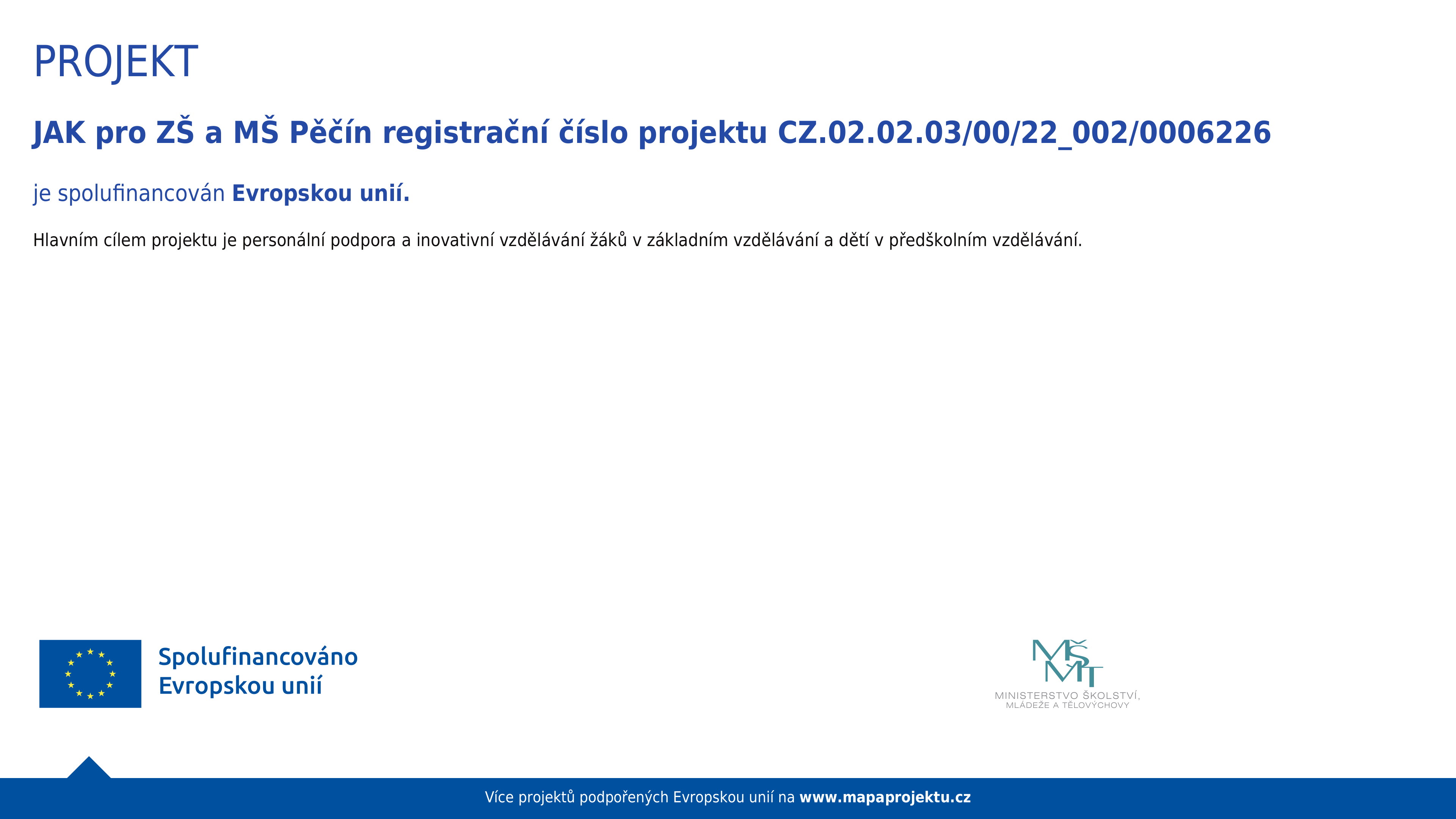 Základní škola a mateřská škola Pěčín se v minulých letech techto projektů NPO financovaných Evropskou unií:
